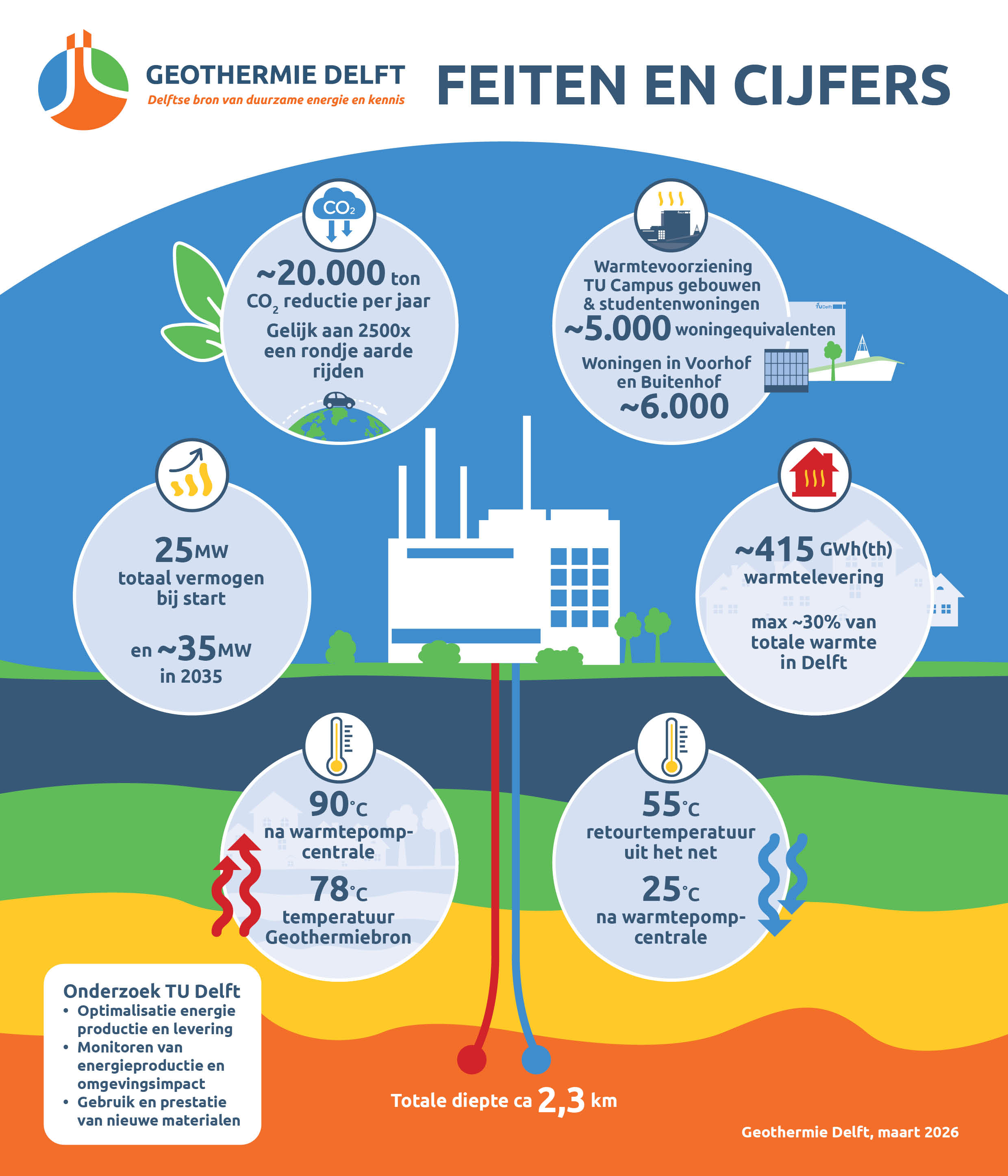 TU Delft, Gaia Energy en EBN hebben onder de naam Geothermie Delft een belangrijke stap vooruit gemaakt in de energietransitie met het aanleggen van een geothermische bron op de campus van TU Delft. In 2026 levert deze bron warmte vergelijkbaar met het warmteverbruik van 6000 huishoudens. Uniek is dat de TU Delft tegelijkertijd ook onderzoek doet naar de winning en het gebruik van geothermie als duurzame warmtebron.